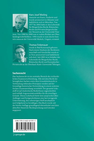 Hans Josef Wieling stammte aus Essen, studierte und wurde promoviert in Münster und habilitierte sich in München. Von 1977 bis 2004 hatte er den Lehrstuhl für Bürgerliches Recht, Römisches Recht und Privatrechtsgeschichte der Neuzeit an der Universität Trier inne. Von 1988 bis 2000 war er zudem Richter am Oberlandesgericht Koblenz. 1994 wurde er zum doctor honoris causa an der Uniersität Miskolc, Ungarn, ernannt. Thomas Finkenauer wurde in Bad Kreuznach geboren. Nach einem Studium der Rechtswissenschaft und Geschichte wurde er in Trier promoviert und habilitierte sich dort. Seit 2005 ist er Inhaber des Lehrstuhls für Bürgerliches Recht, Römisches Recht und Europäisches Privatrecht an der Eberhard-Karls-Universität Tübingen.