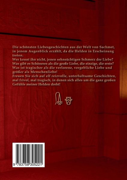 Die schönsten Liebesgeschichten aus der Welt von Sachmet, in jenem Augenblick erzählt, da die Helden in Erscheinung treten. Wer kennt ihn nicht, jenen sehnsüchtigen Schmerz der Liebe? Was gibt es Schöneres als die große Liebe, die einzige, die erste? Was ist tragischer als die verlorene, vergebliche Liebe und größer als Menschenliebe! Freuen Sie sich auf elf reizvolle, unterhaltsame Geschichten, mal frivol, mal tragisch, in denen sich alles um die ganz großen Gefühle meiner Helden dreht!