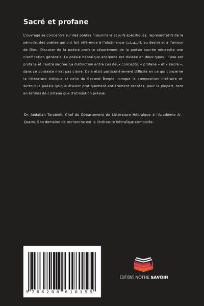 L'ouvrage se concentre sur des poètes musulmans et juifs spécifiques, représentatifs de la période, des poètes qui ont fait référence à l'abstinence ( ), au destin et à l'amour de Dieu. Discuter de la poésie profane séparément de la poésie sacrée nécessite une clarification générale. La poésie hébraïque ancienne est divisée en deux types : l'une est profane et l'autre sacrée. La distinction entre ces deux concepts, « profane » et « sacré », dans ce contexte n'est pas claire. Cela était particulièrement difficile en ce qui concerne la littérature biblique et celle du Second Temple, lorsque la composition littéraire et surtout la poésie lyrique étaient pratiquement entièrement sacrées, pour la plupart, tant en termes de contenu que d'utilisation prévue.