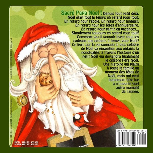 Depuis tout petit déjà, Noël était tout le temps en retard pour tout. En retard pour l'école. En retard pour manger. En retard pour les fêtes d'anniversaire. En retard pour partir en vacances.... Tout simplement toujours en retard pour tout! Mais comment va-t-il bien pouvoir livrer tous les cadeaux aux enfants à temps pour Noël? Ce livre, sur le personnage le plus célèbre de Noël, va enseigner aux enfants la ponctualité, à travers l'histoire d'un petit Noël qui deviendra finalement le célèbre Père Noël. Une histoire qui plaira à toute la famille au moment des fêtes de Noël, mais qui peut également être lue à n'importe quel autre moment de l'année.