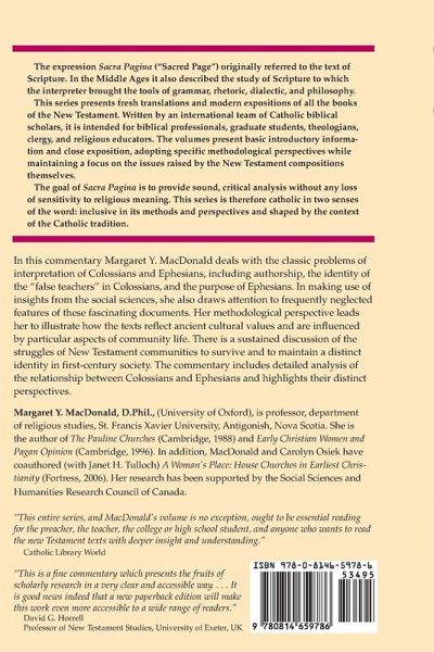 No two works in the Pauline Epistles resemble each other as closely as Colossians and Ephesians. Often recognized for their majestic tone and powerful theological statement, Colossians and Ephesians also present many challenges of interpretation. Most commentaries on these letters seem preoccupied with the same few issues, particularly the question of authorship. As MacDonald addresses these classic questions, she offers a fresh perspective on Colossians and Ephesians by making use of insights from the social sciences. Moreover, by paying attention to subtle differences between the two letters, she brings their distinct perspectives into sharp relief. MacDonald highlights the interplay between Colossians and Ephesians and the social life of New Testament communities. She illustrates how the texts reflect ancient cultural values and are influenced by particular aspects of community life such as worship and household existence. In particular, she reflects on the issues faced by these communities as they formed institutions and interacted with the society around them. She shows the struggles of the New Testament communities to survive and maintain a distinct identity in first-century society. Margaret Y. MacDonald is a professor in the department of religious studies at St. Francis Xavier University in Nova Scotia. She and Carolyn Osiek have coauthored (with Janet H. Tulloch) A Women's Place: House Churches in Earliest Christianity (Fortress, 2006). Her research has been supported by the Social Sciences and Humanities Research Council of Canada.