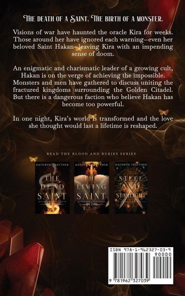 The death of a Saint. The birth of a monster. Visions of war have haunted the oracle Kira for weeks. Those around her have ignored each warning-even her beloved Saint Hakan-leaving Kira with an impending sense of doom. An enigmatic and charismatic leader of a growing cult, Hakan is on the verge of achieving the impossible. Monsters and men have gathered to discuss uniting the fractured kingdoms surrounding the Golden Citadel. But there is a dangerous faction who believe Hakan has become too powerful. In one night, Kira's world is transformed and the love she thought would last a lifetime is reshaped. Discover the origins of the Saint in this prequel short story to the dark fantasy romance The Dead Saint - book one in the Blood and Rubies series.