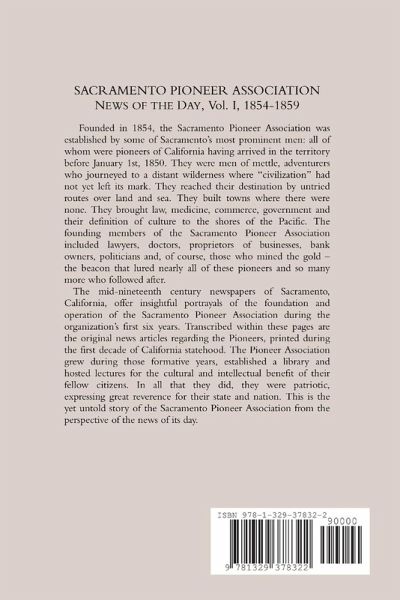 Recorded within these pages is the history of the Sacramento Pioneer Association during the organization's formative first six years. Founded in 1854 by pioneers of the California Gold Rush, the Sacramento Pioneer Association was an historical, civic and cultural society composed of some of Sacramento's most prominent men. Transcribed from newspaper articles contemporary with that bygone era, "News of the Day" is a journey back in time, back to the American Victorian era of California, back to the lives and times of the Sacramento Pioneers.
