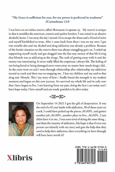 "My Grace is sufficient for you, for my power is perfected in weakness" 2Corinthians 12:9 I was born on an indian reserve called Akwesasne in upstate ny. My reserve is unique in that it straddles the american, ontario and quebec borders. I was raised in an abusive alcoholic home. I ran away the day i turned 16 to escape the abuse and a friend of mine and myself hitchhiked to texas. After i came back from there i was on my own. I got into trouble alot and my alcohol and drug addiction was already a problem. Because of the border situation on the reserve there was always smuggling goin on. I ended up supporting myself nicely and got dragged into the fast easy money of that life.Living that lifestyle was as addicting as the drugs..The rush of getting away with it and the money was intoxicating. It never really filled the emptiness i always felt. The feeling of not being loved or being damaged never went away no matter how much drugs i did..As the years went on and i went through relationship after relationship my addiction turned to crack and there was no stopping me . I lost my children and my soul to that drug and lifestyle.. This i my story of how i finally found the strength in my weakest moment and began on this new journey .Ive survived my whole life and its only now that i have begun to live. I am learning from my past, doing the best i can today and i have hope today. I love myself and am truely grateful to be alive today.