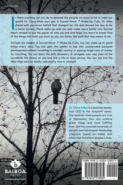 Is there anything we can do to become the people we need to be to meet our goals? Dr. Clare Allen says yes. In Sacred Heart: 7 Wake-Up Calls, Dr. Allen shares with you seven beliefs that changed her life and showed her how to be a better person. These wake-up calls can help make you a better you. Sacred Heart reveals to you the power of who you are and helps you learn to break free of the things that hold you back so you can follow the path that was meant to be. Through the insights in Sacred Heart: 7 Wake-Up Calls, you can wake up to good things every day. You can gain the power to tap into accelerated personal development without travelling to another country or paying large sums of money for coaching. You can learn the skills necessary to navigate your way past all the curveballs life throws at you and live a life of inner peace. You can tap into the Most High and be totally and utterly true to yourself.