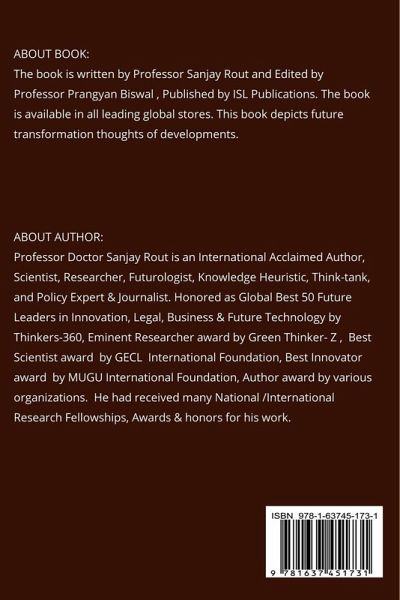 The book is written by Professor Sanjay Rout and Edited by Professor Prangyan Biswal , Published by ISL Publications. The book is available in all leading global stores. This book depicts future transformation thoughts of developments.