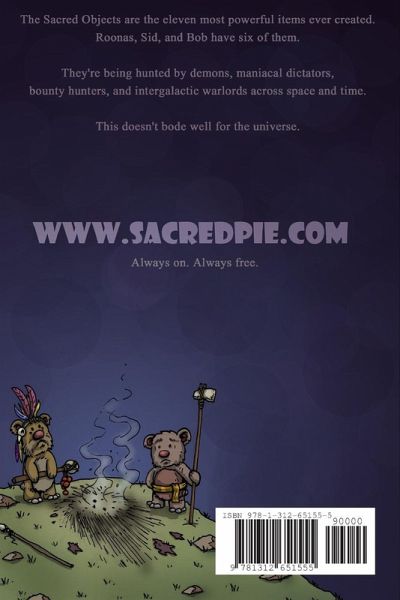 Roonas, Sid, and Bob are in possession of the most powerful objects in the Universe- one of which is a Medallion which has transported them thousands of years into the future and light years from home. Now they're being chased by maniacal despots, galactic warlords, bounty hunters, and demons. The Universe is pretty much screwed. This volume archives the second half of Sacred Pie: Book 1. The first of three books in the epic online comic, Sacred Pie. Check out the rest of the comic (for free!) at www.sacredpie.com !