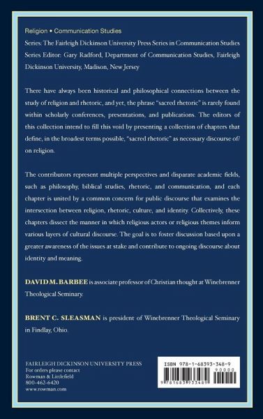 There have always been historical and philosophical connections between the study of religion and rhetoric, and yet, the phrase "sacred rhetoric" is rarely found within scholarly conferences, presentations, and publications. The editors of this collection intend to fill this void by presenting a collection of essays which define, in the broadest terms possible, "sacred rhetoric" as necessary discourse of/on religion. The contributors represent multiple perspectives and disparate academic fields such as philosophy, biblical studies, rhetoric, and communication, and each essay is united by a common concern for public discourse that examines the intersection between religion, rhetoric, culture, and identity. Collectively, these essays dissect the manner in which religious actors or religious themes inform various layers of cultural discourse. The goal is to foster discussion based upon a greater awareness of the issues at stake and contribute to ongoing discourse about identity and meaning.