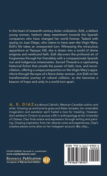 In the heart of sixteenth-century Aztec civilization, Eztli, a defiant young woman, harbors deep resentment towards the Spanish conquerors who have changed her world forever. Tasked with spying on Juan Diego, who claims to have seen the Virgin Mary, Eztli's life takes an unexpected turn. Witnessing the miraculous apparitions at Tepeyac Hill, she is drawn into a world of divine enigmas and newfound faith. Eztli discovers the profound art of forgiveness through her friendship with a compassionate Spanish nun and indigenous missionaries. Sacred Threads is a captivating historical fiction that unveils the power of faith, love, and reconciliation, offering a unique perspective on the Virgin Mary's apparitions through the eyes of a fierce Aztec woman. Join Eztli on her transformative journey of cultural collision, as she becomes a beacon of hope and unity in a world torn apart.