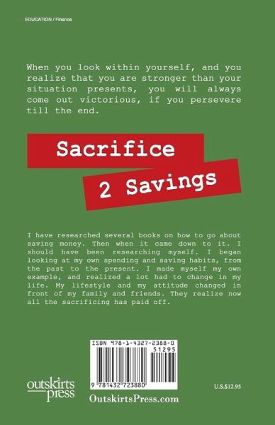 I have read countless books on how to save money. I only came across a few that really motivated me to take a chance to go ahead with what they were suggesting. Like all suggestions, you take what is needed to see if it will help you in the long run. Then I realized that my experience and situation may be different from theirs. That's when I came to the conclusion, that I had to develop a plan that will work for me. You see, when we are looking for a way out of your own personal situation, we tend to look to others for help. Now there is nothing wrong with that, if you need some sort of inspiration or guidance from others. What I am discussing in my book, is first find the motivation or inspiration in yourself and use your own experiences to get yourself back on track to save. We have to realize that all of our problems with spending and saving starts with ourselves. We are the reason why we get behind on bills or over spend on things we don't need. When we take all of our examples and what we get from others, then we can piece it altogether to benefit ourselves. I wrote this book, so I could be an example to show you, that if I could realize there was a way out for me, when I started with ME! You too can believe in yourself and your abilities to pick yourself up out of whatever problems you may be having financially. This book is filled with my experiences that I was having with money as well as stories that motivated me to get myself back on track. My feelings on how I was sick and tired of living from paycheck to paycheck and being without money when I needed it the most. When you are down, there are only two ways you can handle it. Either you lay there and wait for some miracle to happen, which never does, or you come out with your head high fighting for your family and your own financial future. I chose the latter, because I looked within myself and realized that I got myself into this situation and I will be determined to get myself out of it. We go through al