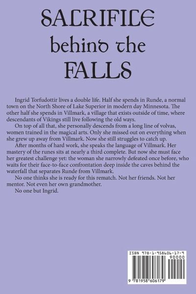 Ingrid Torfudottir lives a double life. Half she spends in Runde, a normal town on the North Shore of Lake Superior in modern day Minnesota. The other half she spends in Villmark, a village that exists outside of time, where descendants of Vikings still live following the old ways. On top of all that, she personally descends from a long line of volvas, women trained in the magical arts. Only she missed out on everything when she grew up away from Villmark. Now she still struggles to catch up. After months of hard work, she speaks the language of Villmark. Her mastery of the runes sits at nearly a third complete. But now she must face her greatest challenge yet: the woman she narrowly defeated once before, who waits for their face-to-face confrontation deep inside the caves behind the waterfall that separates Runde from Villmark. No one thinks she is ready for this rematch. Not her friends. Not her mentor. Not even her own grandmother. No one but Ingrid. Sacrifice Behind the Falls is book 9 in the ongoing Viking Witch Cozy Mystery series!