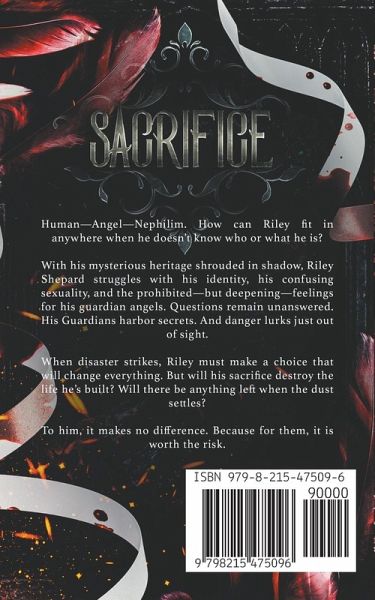 Human—Angel—Nephilim. How can Riley fit in anywhere when he doesn't know who or what he is? With his mysterious heritage shrouded in shadow, Riley Shepard struggles with his identity, his confusing sexuality, and the prohibited—but deepening—feelings for his guardian angels. Questions remain unanswered. His Guardians harbor secrets. And danger lurks just out of sight. When disaster strikes, Riley must make a choice that will change everything. But will his sacrifice destroy the life he's built? Will there be anything left when the dust settles? To him, it makes no difference. Because for them, it is worth the risk. ***Sacrifice is the second book in the slow-burn harem/poly romance series, Fire & Brimstone, featuring hurt/comfort, temptingly sexy guardian angels, forbidden love, and an unlikely hero who discovers what it means to be free. Trigger warnings include: situations of homophobia (both external and internal), violence with low-level gore, and off-page sexual assault.***