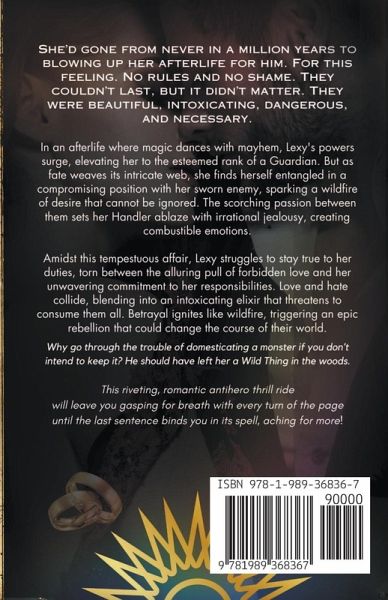 She'd gone from never in a million years to blowing up her afterlife for him. For this feeling. No rules and no shame. They couldn't last but it didn't matter. They were beautiful, intoxicating, dangerous, and necessary. In a secret afterlife of magical mayhem, Lexy's powers surge, elevating her to the esteemed rank of a Guardian. But as fate weaves its intricate web, she finds herself entangled in a compromising position with her sworn enemy, sparking a wildfire of desire that cannot be ignored. The scorching passion between them sets her Handler ablaze with irrational jealousy, creating combustible emotions. Amidst this tempestuous affair, Lexy struggles to stay true to her duties, torn between the alluring pull of forbidden love and her unwavering commitment to her responsibilities. Love and hate collide, blending into an intoxicating elixir that threatens to consume them all. Betrayal ignites like wildfire, triggering an epic rebellion that could change the course of their world.Lexy faces a choice - will she flip the script of immortality, defying all odds to pursue the heart's desire, or will she merely flip tables, shattering the fragile bonds that tie them together? Join her on this heart-pounding, lusty adventure as laughter, suspense, and passion collide in a symphony of pleasure and pain. Amid the chaos, Lexy embarks on a journey of intimate exploration, where secrets are laid bare, and she discovers the raw essence of her true desires. This riveting, romantic antihero thrill ride will leave you gasping for breath with every turn of the page until the last sentence binds you in its spell, aching for more. Why go through the trouble of domesticating a monster if you don't intend to keep it? He should have left her a Wild Thing in the woods. The information within this universe is not intended for mere mortals. Reading this may inadvertently trigger your Correction. If you show bravery during your demise, the Guardians of the In-between may give you a second chance. You are still reading this, aren't you? You've got this. Read It Now