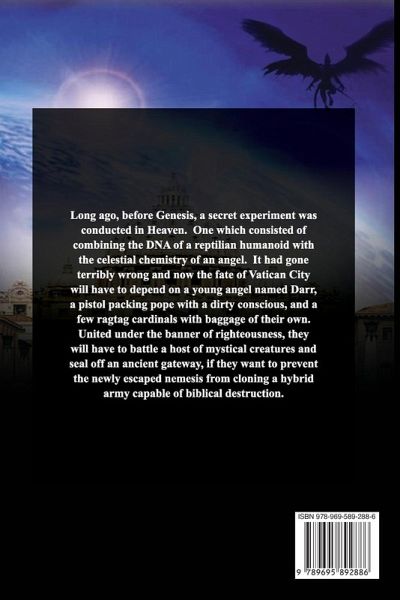 Long ago, before Genesis, a secret experiment was conducted. One which consisted of combining the DNA of a reptilian humanoid with the celestial chemistry of an angel. It had gone terribly wrong and now the fate of Vatican City will have to depend on an apprentice angel named Darr, a pistol packing pope with a dirty conscious, and a few ragtag cardinals with baggage of their own. United under the banner of righteousness, they will have to battle a legion of mystical creatures and seal off an ancient gateway, if they want to prevent the newly escaped nemesis from cloning a hybrid army capable…mehr