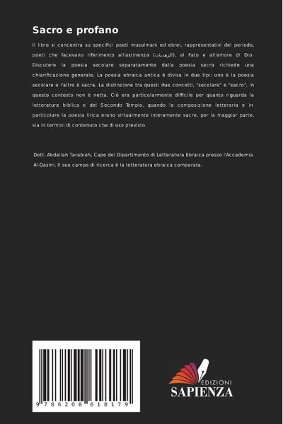 Il libro si concentra su specifici poeti musulmani ed ebrei, rappresentativi del periodo, poeti che facevano riferimento all'astinenza (¿¿¿¿¿¿¿¿), al Fato e all'amore di Dio. Discutere la poesia secolare separatamente dalla poesia sacra richiede una chiarificazione generale. La poesia ebraica antica è divisa in due tipi: uno è la poesia secolare e l'altro è sacra. La distinzione tra questi due concetti, "secolare" e "sacro", in questo contesto non è netta. Ciò era particolarmente difficile per quanto riguarda la letteratura biblica e del Secondo Tempio, quando la composizione letteraria e in particolare la poesia lirica erano virtualmente interamente sacre, per la maggior parte, sia in termini di contenuto che di uso previsto.