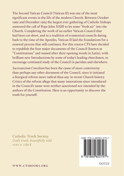Vatican II was one of the most significant events in the life of the modern Church. Between October 1962 and December 1965 the largest ever gathering of Catholic bishops answered the call of Pope John XXIII to let some fresh air into the Church. Completing the work of an earlier Vatican Council that had been cut short, and in a tradition of ecumenical councils dating back to the time of the Apostles, Vatican II laid the foundations for a renewal process that continues. For this reason, CTS decided to republish the four major documents of the Council (known as Constitutions and named after their opening words in Latin), with brilliant new Introductions by some of today's leading churchmen, to encourage continued study of the Council in parishes and elsewhere. Sacrosanctum Concilium has been the cause of more controversy than perhaps any other document of the Council, since it initiated a liturgical reform more radical than any in recent Church history. Critics of the reform allege that many innovations since introduced in the Council's name were neither sanctioned nor intended by the authors of the Constitution. Here is an opportunity to discover the truth for yourself.