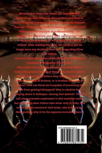 This book deals with some of the difficult-to-understand pastimes of Bhagawan Vishnu, like: Why is Shiva the greatest devotee of Vishnu? Why is Vishnu the greatest enemy of Shiva? Why doesn't Vishnu kill the demons right before they take their birth? Is Vishnu the Avtar of Krishna, or is Krishna the Avtar of Vishnu? How can Rama be incapable of protecting his wife from getting kidnapped? Why is Lakshmi Devi staying alone in Kolhapur, leaving Hari behind? Things will always remain unpleasant in this material world, but why? Why does Vishnu take Avtar only in India, and not in foreign countries? And lastly, who is Sri-Krishna-Chaitanya-Mahaprabhu, why is he the supreme karuna-avatara? After reading this book the readers will deeply appreciate Narayana lila, Rama lila, Krishna lila, and the process of Bhakti.