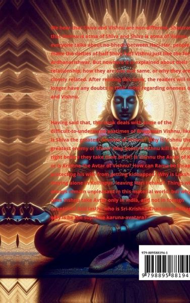 This book deals with some of the difficult-to-understand pastimes of Bhagawan Vishnu, like: Why is Shiva the greatest devotee of Vishnu? Why is Vishnu the greatest enemy of Shiva? Why doesn't Vishnu kill the demons right before they take their birth? Is Vishnu the Avtar of Krishna, or is Krishna the Avtar of Vishnu? How can Rama be incapable of protecting his wife from getting kidnapped? Why is Lakshmi Devi staying alone in Kolhapur, leaving Hari behind? Things will always remain unpleasant in this material world, but why? Why does Vishnu take Avtar only in India, and not in foreign countries? And lastly, who is Sri-Krishna-Chaitanya-Mahaprabhu, why is he the supreme karuna-avatara? After reading this book the readers will deeply appreciate Narayana lila, Rama lila, Krishna lila, and the process of Bhakti.