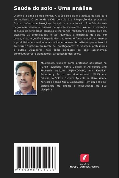 O solo é a alma da vida infinita. A saúde do solo é a aptidão do solo para ser utilizado. O cerne da saúde do solo é a integração dos processos físicos, químicos e biológicos do solo e a sua função. A saúde do solo degrada-se devido a práticas de gestão incorrectas. Assim, a utilização conjunta de fertilização orgânica e inorgânica melhorará a saúde do solo, alterando as propriedades físicas, químicas e biológicas do solo. Por conseguinte, a gestão integrada dos nutrientes é fundamental para manter a produtividade e melhorar a qualidade do solo. Acredita-se que o livro irá satisfazer a procura crescente de investigadores, estudantes, professores e outros utilizadores, tais como cientistas do solo, agrónomos, administradores e planeadores da utilização dos solos.