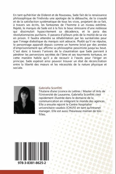 En tant qu'héritier de Diderot et de Rousseau, Sade fait de la renaissance philosophique de l'individu une apologie de la débauche, de la cruauté et de la satisfaction systématique de tous les vices, projetant de ce fait, à travers ses écrits, les fantasmes de l'homme à un niveau extrême. Rejeté, le marquis de Sade est à la fois le bouc émissaire d'une noblesse qui dissimulait hypocritement sa décadence, et le paria des révolutionnaires puritains. Il passera d'ailleurs près de la moitié de sa vie en prison. Il faudra attendre sa réhabilitation par les surréalistes pour que l'image diabolique du marquis soit adoucie. Plutôt qu'il ne répulse, le personnage apparaît depuis comme un homme brisé par des années d'emprisonnement qui affirme sa philosophie pessimiste jusqu'au bout. C'est donc à travers l'univers de la claustration que Sade parvient à pénétrer les perversions secrètes de l'âme et ses tourments tortueux, en cette manière habile qu'il a de recourir à l'excès pour l'ériger en principe. Sade espérait ainsi pouvoir trouver un état de réconciliation entre la liberté des moeurs et les nécessités de la nature physique et sociale.
