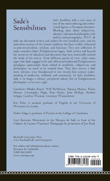 Sade's Sensibilities examines a new and different Sade: one engaged with broader currents of Enlightenment feeling. In this volume, we recapture a historical Sade alongside a contemporary portrait of Sade as the consummate radical of the eighteenth century.