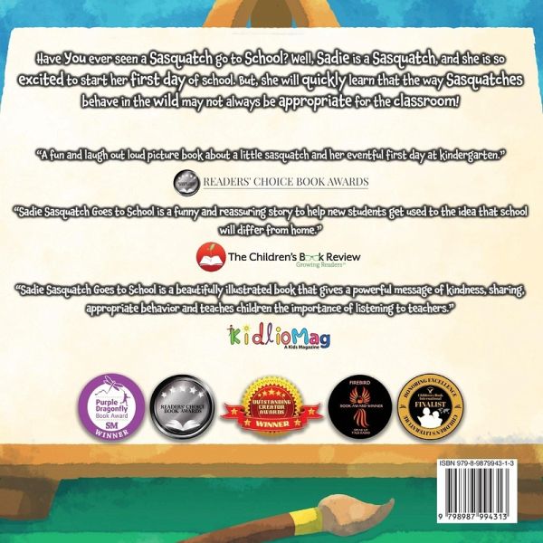 Have you ever seen a Sasquatch go to school? Well, Sadie is a Sasquatch, and she is so excited to start her first day of school. But, she will quickly learn that the way Sasquatches behave in the wild may not always be appropriate for the classroom! -Winner in the Outstanding Creator Awards: --Best Children's Book for Spring 2023 - 1st Place! --Myths/Legends & Cryptids - 1st Place! --Illustrated & Picture Books - 2nd Place! --Special Award for Funny/Bizarre Moments - Winner! -Winner in the 2023 Firebird Book Awards -Winner in the 2023 Story Monsters - Purple Dragonfly Book Awards -Finalist in the 2023 National Indie Excellence Awards -Finalist in the 2023 Reader's Choice Book Awards