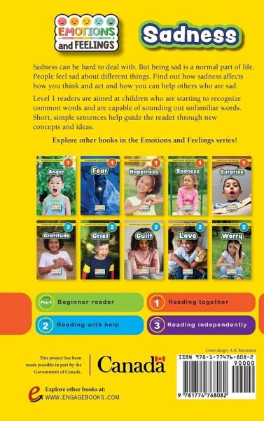 Sadness can be hard to deal with. But being sad is a normal part of life. People feel sad about different things. Find out how sadness affects how you think and act and how you can help others who are sad. Level 1 readers are aimed at children who are starting to recognize common words and are capable of sounding out unfamiliar words. Short, simple sentences help guide the reader through new concepts and ideas. This project has been made possible in part by the Government of Canada.