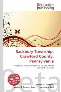 Please note that the content of this book primarily consists of articles available from Wikipedia or other free sources online. Sadsbury Township is a township in Crawford County, Pennsylvania, United States. The population was 2,941 at the 2000 census.According to the United States Census Bureau, the township has a total area of 25.1 square miles (65.0 km²), of which, 23.7 square miles (61.4 km²) of it is land and 1.4 square miles (3.5 km²) of it (5.42%) is water.As of the census[1] of 2000, there were 2,941 people, 1,274 households, and 845 families residing in the township. The population density was 124.0 people per square mile (47.9/km²). There were 2,177 housing units at an average density of 91.8/sq mi (35.5/km²).