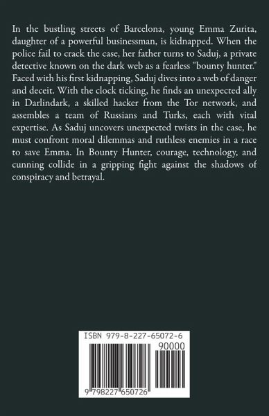 In the bustling streets of Barcelona, young Emma Zurita, daughter of a powerful businessman, is kidnapped. When the police fail to crack the case, her father turns to Saduj, a private detective known on the dark web as a fearless "bounty hunter." Faced with his first kidnapping, Saduj dives into a web of danger and deceit. With the clock ticking, he finds an unexpected ally in Darlindark, a skilled hacker from the Tor network, and assembles a team of Russians and Turks, each with vital expertise. As Saduj uncovers unexpected twists in the case, he must confront moral dilemmas and ruthless enemies in a race to save Emma. In Bounty Hunter, courage, technology, and cunning collide in a gripping fight against the shadows of conspiracy and betrayal.