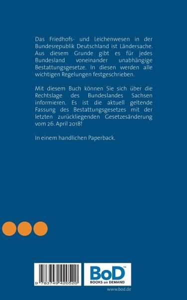 Das Friedhof- und Leichenwesen ist in der Bundesrepublik Deutschland Ländersache. Daher gibt es für jedes Bundesland sowie jeden Stadtstaat voneinander unabhängige Bestattungsgesetze. In diesen werden alle wichtigen Regelungen und Vorschriften festgeschrieben. Hierauf bauen dann teils Verordnungen auf.Mit diesem Buch können Sie sich über die Rechtslage des Bundeslandes Sachsen informieren. Es ist die aktuell geltende Fassung des Bestattungsgesetzes mit der letzten zurückliegenden Gesetzesänderung vom 26. April 2018!In einem handlichen Paperback - Ideal für Ihre tägliche Arbeit!