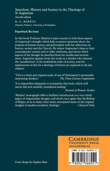 In this book Professor Markus's main concern is with those aspects of Augustine's thought which help to answer questions about the purpose of human society, and particularly with his reflections on history, society and the Church.