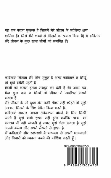 This is a poetry book. Including the best moments of my life. Which I have tried to write in words. These poems are dedicated to some special people in my life.