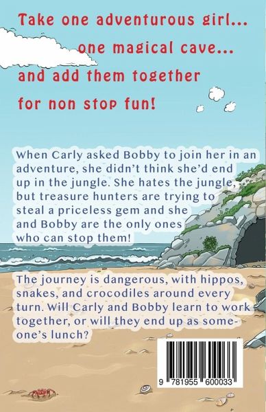 When Carly asked Bobby to join her in an adventure, she didn't think she'd end up in the jungle. She hates the jungle, but treasure hunters are trying to steal a priceless gem and she and Bobby are the only ones who can stop them! The journey is dangerous, with hippos, snakes, and crocodiles around every turn. Will Carly and Bobby learn to work together, or will they end up as someone's lunch?