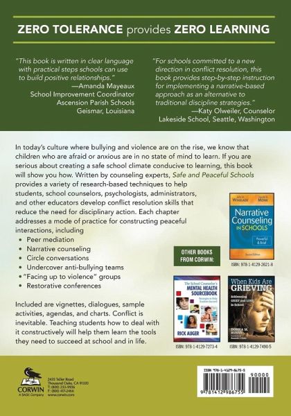 Zero tolerance provides zero learning We know that bullying and violence severely impact children’s ability to learn. If you are serious about creating a safe school climate, this book will show you how.
