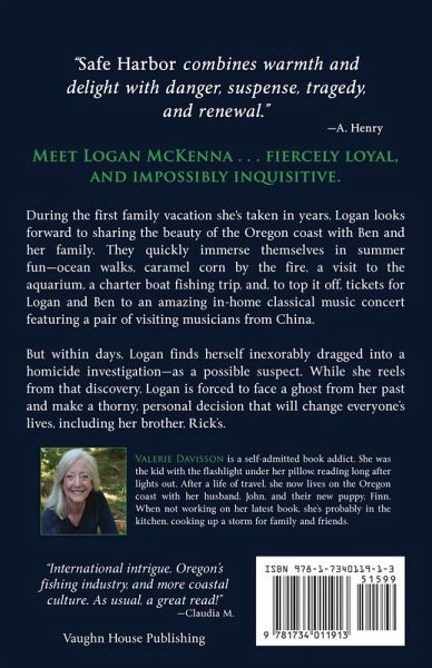 One of the last to see a charter boat captain alive makes Logan a suspect...and the killer's next target. During the first vacation she's taken in years, Logan looks forward to sharing the beauty of the Oregon coast with Ben and her family. They quickly immerse themselves in summer fun. Ocean walks, caramel corn by the fire, a visit to the aquarium, a charter boat fishing trip, and to top it off, tickets for Logan and Ben to an amazing, in-home classical music concert featuring visiting musicians from China. But within days, Logan finds herself inexorably dragged into a homicide investigation-as a possible suspect! While reeling from that discovery, Logan is forced to face a ghost from her past and make a thorny, personal decision that will change everyone's lives, including her brother, Rick's. Weaving themes of loss, healing, forgiveness, family, love, and community, Davisson's characters all seek a safe harbor, but not all of them find one. Fans of J.A Jance, Louise Penny, Elly Griffiths, Nevada Barr, Sue Grafton, C.J. Box, William Kent Krueger, James Patterson, or Alexander McCall Smith will love fiercely independent and loyal Logan McKenna!