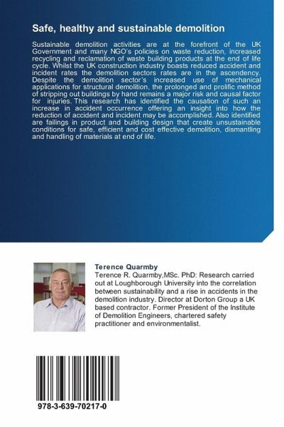 Sustainable demolition activities are at the forefront of the UK Government and many NGO s policies on waste reduction, increased recycling and reclamation of waste building products at the end of life cycle. Whilst the UK construction industry boasts reduced accident and incident rates the demolition sectors rates are in the ascendency. Despite the demolition sector s increased use of mechanical applications for structural demolition, the prolonged and prolific method of stripping out buildings by hand remains a major risk and causal factor for injuries. This research has identified the causation of such an increase in accident occurrence offering an insight into how the reduction of accident and incident may be accomplished. Also identified are failings in product and building design that create unsustainable conditions for safe, efficient and cost effective demolition, dismantling and handling of materials at end of life.
