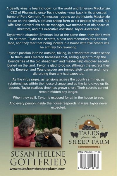 A deadly virus is bearing down on the world and Emerson Mackenzie, CEO of PharmaScience Technologies-now back in its ancestral home of Port Kenneth, Tennessee-opens up the historic Mackenzie house on the family's defunct sheep farm to six people: himself, his wife Tess Cartieri, his house manager, two members of his board of directors, and his executive assistant, Taylor Alexander. Taylor won't abandon Emerson, but at the same time, they don't want to be there. Taylor has secrets, a past and memories they cannot face, and they fear that being locked in a house with five others will be entirely too revealing. Taylor's passion is to be outside, hiking, in a world that makes sense to them, and Emerson harnesses that, asking Taylor to map the boundaries of the old sheep farm and maybe help discover secrets buried on the land. Taylor is glad to do so, although the secrets they help Emerson and Tess discover are immediately darker and more disturbing than any had expected. As the virus rages, as tensions across the country simmer, as relationships within the house change, and as the land gives up its secrets, Taylor realizes time has grown short. Their secrets cannot remain hidden any longer. When they spill, Taylor is exposed for all in the house to see. And every person inside the house responds in ways Taylor never expected.
