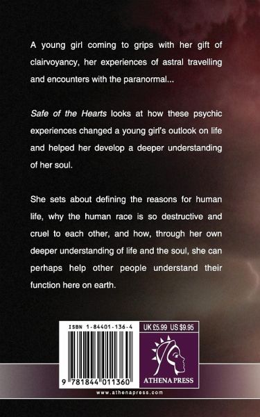A young girl coming to grips with her gift of clairvoyancy, her experiences of astral travelling and encounters with the paranormal... Safe of the Hearts looks at how these psychic experiences changed a young girl's outlook on life and helped her develop a deeper understanding of her soul. She sets about defining the reasons for human life, why the human race is so destructive and cruel to each other, and how, through her own deeper understanding of life and the soul, she can perhaps help other people understand their function here on earth.