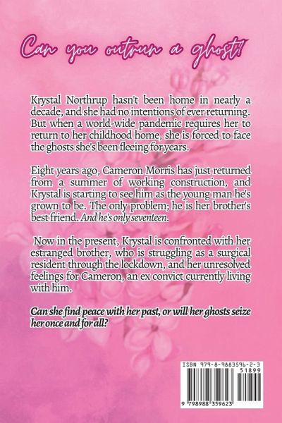 CAN YOU OUTRUN A GHOST? Krystal Northrup hasn't been home in nearly a decade, and she had no intentions of ever returning. But when a worldwide pandemic requires her to return to her childhood home, she is forced to face the ghosts she's been fleeing for years. Eight years ago, Cameron Morris has just returned from a summer of working construction, and Krystal is starting to see him as the young man he's grown to be. The only problem; he is her brother's best friend. And he is only seventeen. Now in the present, Krystal is confronted with her estranged brother, who is struggling as a surgical resident through the lockdown, and her unresolved feelings for Cameron, an ex-convict currently living with him. Can she find peace with her past, or will her ghosts seize her once and for all? A tale of second chances.