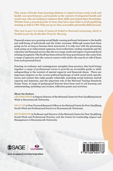 Provides busy social work and health care practitioners with an accessible guide to adult safeguarding in the context of mental capacity and financial abuse. Drawing on evidence and contemporary examples from practice this book will help readers understand the new landscape of safeguarding adults since the implementation of the Care Act 2014 and the introduction of Adult Safeguarding Boards. There are chapters on the current political landscape of adult social work, specific issues and contexts that make people vulnerable (social isolation, mental capacity, dementia), and important methods of assessment and intervention. A range of pedagogical features are also used to aid learning and understanding including the use of case studies, reflection points, brief exercises and further reading.