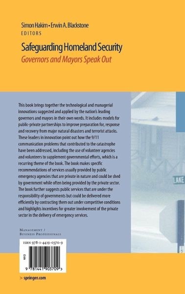 The terrorist attack of September 11, 2001, and the natural disasters of Hurricanes Katrina and Rita demonstrated the challenges that governments face in initial response and recovery efforts. This book details the important steps that governors and mayors have initiated to address the serious problems illustrated by these recent disasters. The innovative solutions include developing more reliable communications, creating public-private partnerships to supplement public emergency services, establishing fusion c- ters that interpret information, and creating joint operations centers to manage the response to the event. There are important lessons to be learned from the managerial and technological innovations that the governors and mayors describe in this book. As the Mayor of Philadelphia and now as the Governor of Pennsylvania, I have contributed to three books on best practices of state and local governments. I am pleased to participate in the efforts of the Center for Competitive Government of the Fox School at Temple University to address the important issues faced by governments. This book makes an important contribution to the public discussion on the public and private sectors' role in homeland security. Commonwealth of Pennsylvania Governor Edward G. Rendell vii Acknowledgement The editors would like to acknowledge Dr. M. Moshe Porat, Dean of the Fox School at Temple where the Center for Competitive Government is located. His strong c- tribution and support for the Mayors' Summits is most appreciated. Many chapters for our books including this one emanated from these Summits.