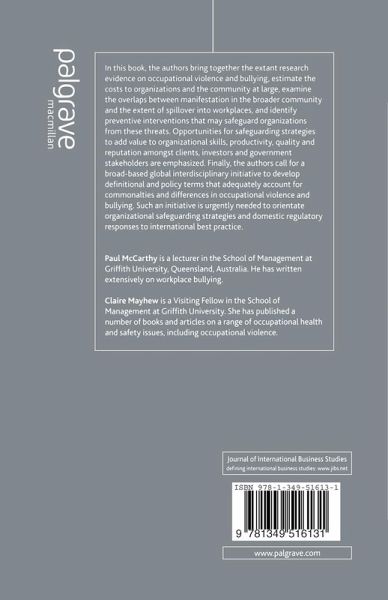In this book, the authors bring together the extant research evidence on occupational violence and bullying, estimate the costs to organizations and the community at large, examine the overlaps between manifestation in the broader community and the extent of spillover into workplaces, and identity preventive interventions that may safeguard organizations from these threats. Opportunities for safeguarding strategies to add value to organizational skills, productivity, quality and reputation amongst clients, investors and government stakeholders are emphasized.