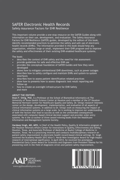 Introduction. The Context of EHR Safety and the Need for Risk Assessment. 2. Analysis of EHR Safety. 3. User Context of Safe and Effective EHR Use. 4. Conceptual Foundation of SAFER Guides. 5. SAFER Guide Development Methods. 6. Overview of SAFER Guides. 7. Mitigating EHR Downtimes. 8. Safely Configuring and Maintaining EHRs and System-to-System Interfaces. 9. Assessment of Patient Identification Related Practices. 10. Assessment of Computer-based Provider Order Entry with Clinical Decision Support. 11. Assessment of Diagnostic Test Result Reporting and Follow-Up. 12. Assessment of Clinician-to-Clinician E-Communication. 13. Assessment of Handheld Computing Devices. 14. Increasing Resilience in an EHR-Enabled Healthcare Organization. 15. Creating an Oversight Infrastructure for EHR Safety. Index.