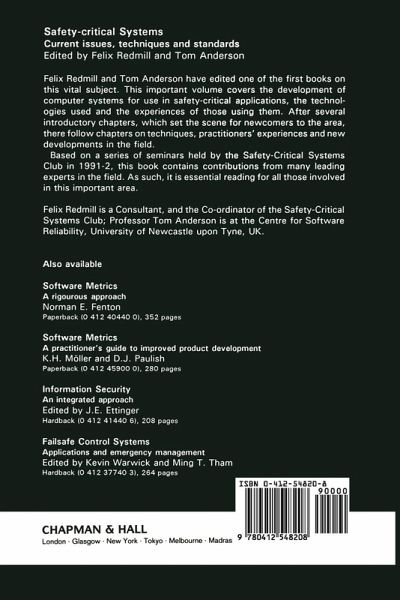 I would urge anyone who is concerned with safety-sensitive systems to read and contemplate John McDermid's excellent overview of the key issues and to savour some of the other chapters...a useful collection to engender improvements by new professionals - Computing and Control Engineering Journal; ...valuable information for anyone involved in the development of safety-critical systems - Software Quality Management