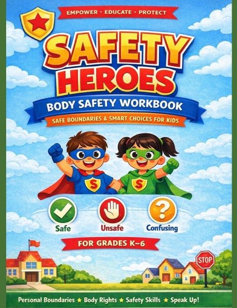 The Safety Heroes(TM) Curriculum Student Work Book Series is an age-appropriate, empowerment-based educational program designed to help children develop essential body safety, boundary awareness, and self-advocacy skills in a positive, non-graphic way. This series teaches children that safety is strength, their body belongs to them, and they have the right to speak up and seek help from trusted adults. The series is ideal for:Parents and caregivers Classrooms (K-6) School counselors and educators Faith-based and community organizations Together, they help children understand that every child has a voice, a choice, and the right to be safe. A Note to Parents & Educators The Safety Heroes(TM) Curriculum is designed to start healthy conversations, not create fear. Lessons are rooted in empowerment, prevention, and trust-building, helping children feel safe, supported, and confident.