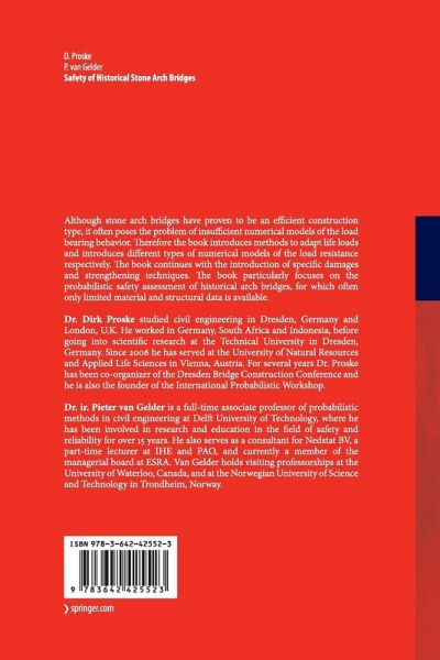 Dr. Dirk Proske studied civil engineering in Dresden, Germany and London, U.K. He worked in Germany, South Africa and Indonesia, before going into scientific research at the Technical University in Dresden, Germany. Since 2006 he has served at the University of Natural Resources and Applied Life Sciences in Vienna, Austria. For several years Dr. Proske has been co-organizer of the Dresden Bridge Construction Conference and he is also the founder of the International Probabilistic Workshop. Dr. ir. Pieter van Gelder is a full-time associate professor of probabilistic methods in civil engineering at Delft University of Technology, where he has been involved in research and education in the field of safety and reliability for over 15 years. He also serves as a consultant for Nedstat BV, a part-time lecturer at IHE and PAO, and currently a member of the managerial board at ESRA. Van Gelder holds visiting professorships at the University of Waterloo, Canada, and at the Norwegian University of Science and Technology in Trondheim, Norway.