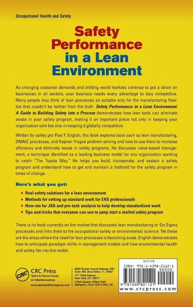 "Foreword For some people, the combination of lean enterprise and environmental health and safety (EHS) is like mixing oil and water. The reality is that both have many commonalities. In many cases, people focus on lean as only for the manufacturing floor and their processes, but that couldn't be further from the truth. Lean is about behavioral change: a change for the better, identifying simple and waste-free methods to perform any activity, process, or service. In EHS, approximately 85% of all injuriesare related to poor behaviors (unsafe acts); therefore we must create a safety culture. EHS professionals must recognize the power of the lean culture and use its power to build upon their own EHS culture. Why not incorporate EHS into the idea of standardized work for all activities, why not incorporate safety into your 5S audits, why not visualize safety within the visual management tools in the workplace, why not make safety part of leadership standard audits and shop floor (Gemba) walks, and why not work with your lean leadership to change the culture together? EHS already has many of the expected lean tools in its arsenal. When an injury occurs, it is expected that the EHS and leadership team react quickly with a sense of urgency to solve the root cause of the injury. Therefore, we all rush to the area to see what happened (go and see), we investigate and utilize problem-solving techniques (5-Why, 8D, etc.). We do our best to find and eliminate the root cause of that injury and we look for other areas or similar conditions and implement corrective actions (yokoten or knowledge sharing). From my 18 years of lean experience, that sure does sound like a strong lean culture and methodology"--