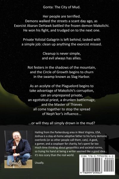 Gonta: The City of Mud. Her people are terrified. Demons walked the streets a scant day ago, as Exorcist Akaran DeHawk battled the frozen demon Makolichi. He won his fight, and trudged on to the next one. Prviate Yolistal Galagrin was left behind, tasked with the simple duty of cleaning up any residual mess that the exorcist may have missed. But cleanup is never simple, and evil always has allies. Rot festers in the shadows of the mountain, and the Circle of Growth churns in the swamp known as Slag Habor. As an acolyte of the Plaguelord begins to take advatange of Makolichi's corruption, can an unprepared private, an egotistical priest, a drunken battlemage, and the Master of Thieves all come together to step the spread of Neph'kor's influence... ...or will they all simply drown in the mud?
