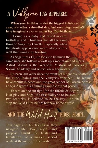 A Valkyrie has appeared, When your birthday is also the biggest holiday of the year, it's often a dreadful day, but even Saga couldn't have imagined a day as bad as her 15th birthday. Found as a baby and raised in care, birthdays and Christmas are all the same thing to Saga Joy Carolle. Especially when the ghosts appear once more, along with a wolf that won't stop howling. As Saga turns 15, life looks to be much the same until she follows a wolf up a mountain and meets Astrid. Astrid is the Weapons Mistress at Toserra Sorose Academy and Astrid knew her mother. It's been 200 years since the events of Ragnarök shattered the Nine Realms and the Valkyries vanished. The realms have rebuilt in peace and the great school of Toserra Sorose at Nýr Ásgardr is a shining example of that peace. Except an ancient fight for the throne of Asgard is at play and Saga, the first Valkyrie to be seen in two centuries, is believed to be the key. Can she stop the Wild Hunt before her new home burns? And the Wild Hunt rides again... Join Saga and her friends as they navigate life, love, myth, and purpose amidst the trials and tribulations of a magical school while at the mercy of the Gods.