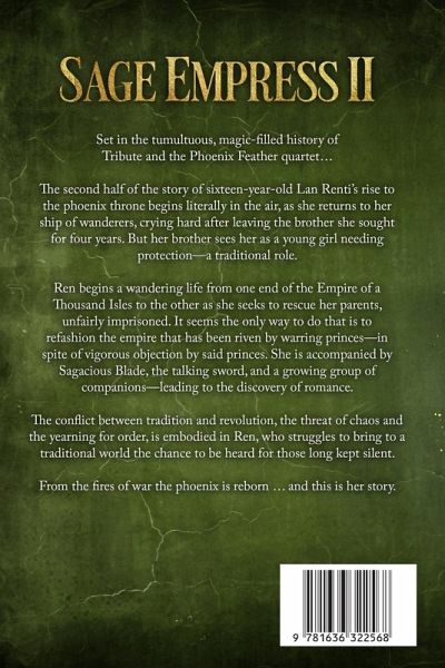 Set in the tumultuous, magic-filled history of Tribute and the Phoenix Feather quartet... In the second half of the story of sixteen-year-old Lan Renti's rise to the phoenix throne begins literally in the air, as she returns to her ship of wanderers, crying hard after leaving the brother she sought for four years. But her brother sees her as a young girl needing protection-a traditional role. Ren begins a wandering life from one end of the Empire of a Thousand Isles to the other as she seeks to rescue her parents, unfairly imprisoned. It seems the only way to do that is to refashion the empire that has been riven by warring princes-in spite of vigorous objection by said princes. She is accompanied by Sagacious Blade, the talking sword, and a growing group of companions-leading to the discovery of romance. The conflict between tradition and revolution, the threat of chaos and the yearning for order, is embodied in Ren, who struggles to bring to a traditional world the chance to be heard for those long kept silent. From the fires of war the phoenix is reborn ... and this is her story.